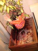 2004.2月掲載 サイマティクス・音の治療 九州のあやしいおじさんことMさんが関西に来た時、京都の岩重先生という方を教えていただいた。岩重先生は内科のドクターで、サイマティクスという音を使用した治療用の機械を使っているのだそうだ。 この話を聞いたのは、JR橘駅徒歩5分の所にある喫茶「篝かがり」という店だ。「面白い店があって、またマスターが面白い人なんですよ」という言葉に誘われて来たが、これはハンパではない。 木製のドアを開けると数メートルの細長い通路があり、その奥にやはり細長く店がある。通路には大きなツボに菊の花か何かが無造作に活けてあり、なにやら仏像も並んでいる。一歩踏み出して奥を見ると、所せましと仏像だらけだ。いきなり頭がパカーンと開いてしまった。 この店には座る所があるんだろうか、と思いながら進んでいくと、大中小の仏像たちの間に、ちゃんとテーブルとイスがあった。ということはお茶も飲めるのだろう。大きなツボの上に包装紙やら紙類やらが積んである。仏像の隙間にも何か置いてある。よく見ると骨董品のコーヒーミルのようなものもあるし、インドチックな飾りが天井から下がっていたりする。奥にももう一つテーブルがあり、やはり大中小の仏像に囲まれている。仏像コレクションの置いてある納戸で喫茶店をしている、という感じなのだ。 ここまでぶっとんで怪しい店にいると、どんな話を聞いても普通に聞こえてしまうので、注意が必要だ。マインドを一般常識モードに切り替えてMさんの話を聞くことにした。 「ドクターマナーという人を知っていますか。」こういうのは、相手が知らないことが分かっているくせにする質問だ。 「知りません」 「この人はサイマティクスという、音を使った治療の機械を作った人なんですよ。この人はこの自分で作った機械を使って、若い人の細胞のエネルギーをなんかして、現在200才なんだそうですよ。」むむむ、怪しい。 「この人はどこぞの王室にも関係のある人で、スタートレックってあったでしょう。あの中に出てくる機械は全て、もうこの人によって完成されているらしいんですよ。」むむむ… 「映画の未知との遭遇で、異星人とコンタクトをとるのに音を使ったでしょ。あの音を作ったのもこのドクターマナーさんらしいんですよ。」これは今までの情報で、一番可能性がありそうだ。 「何しろ、サイマティクスというのは、あらゆる病気を治してしまうそうですよ。でも、直してはいけない病気もあるんですね。それは手をつけないそうですよ、岩重先生は。」そうか。良心的な人らしい。 「岩重先生は、日本で唯一、この機械を使って治療してもいいという資格を持ったお医者さんなんですよ。」これはあり得る話だ。 しかし、 Mさんの話は、やっぱり怪しい。この先生には会ってお話を聞かなければ。それにもしかしたら「精神世界頭脳場」で話をしてもらえるかもしれない。 Mさんの紹介で、ということで岩重先生に会いに行こう、と思っていると、ある偶然が重なって流れ星さんとご縁があることが分かった。こうなればもうずうずうしく突撃だ。 クリニックに電話をしてみたら、とても落ち着いたいい感じの声だ。18日の13時から14時なら少し時間があります、ということで、その時間におじゃました。 場所はちょっと分かりにくい。ビルの5階に入っているが、ドアに小さくクリニックの名前があるだけだ。ピンポンを押すと中からインド顔の男性が開けてくれた。それが岩重先生だった。 受付らしきテーブルには水晶が置いてある。反対側の壁には非常に美しい曼陀羅の絵。都会的で無駄のないシャープなインテリア。ソファの両側にも小さな水晶の飾りだながある。 招かれるままに奥に進むと、テーブルとイス。木で出来た1メートル四方の立方体を思い浮かべてほしい。それがテーブルの脚にあたるものだ。その上には2メートル四方くらいのガラス板が乗せてあり、それがテーブルだ。白いイスに勧められて腰掛けると、なにやら美しい音色が聞こえる。なんと!!!!テーブルの脚に当たる立方体の中に、水琴窟が作ってあるというのだ。 口を半開きにしたまま目をまん丸にしてあちこち見ていたら、目の前の壁に非常に美しい絵が掛かっている。見ているだけで心がスーっと落ち着いてくる。縦長の絵で、濃いブルーの真ん中に彗星のような白いものが描かれている。 「あの絵は『誕生』というタイトルなんですよ」と説明してくれた。人間や動物、植物の誕生という感じではない。何かもっと別のものだ。質問してみると「宇宙でしょうね。」そうか。でもビックバンでは全然ない。何か、宇宙のエッセンスのようなものの誕生を描いているのだろうか。 絵のおかげで心が落ち着いたので、さっそく質問してみた。 実はここに来る前日、VOICEからダイレクトメールが届いて、なんとなく眺めていたら「サイマティクス」の機械を販売しているのだ。私はびっくりしてそのダ