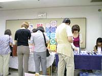 私たちが割り当てられた部屋は展示ブースでは一番大きな部屋で、ドルフィンセラピーとか筮竹(ぜいちく:占いの道具)をあやつっている人がいる。